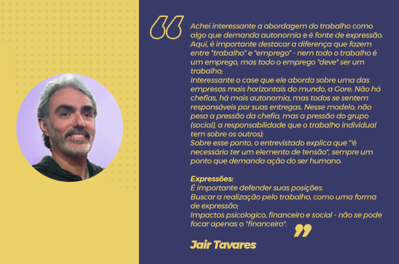 O tema escolhido foi “Emprego não é trabalho. Vocação não é propósito”, episódio 81 da série CBN Professional.